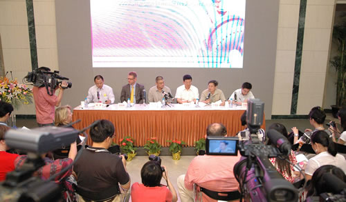 2008第七届上海双年展新闻发布会于今天下午在上海美术馆一楼大厅举行。上海市文化广播影视管理局副局长、第七届上海双年展组织委员会常务副主任刘文国、上海美术馆馆长、第七届上海双年展学术委员会主席方增先 、中国美术娱乐城注册 院长、第七届上海双年展学术委员会主任许江、上海美术馆执行馆长、第七届上海双年展组织委员会秘书长李磊、 瑞士嘉盛莱宝集团国际部主管 赞助单位代表高伟律、 上海文广传媒集团艺术人文频道总监王磊卿等以及参展艺术家和各媒体的记者参加了会议。