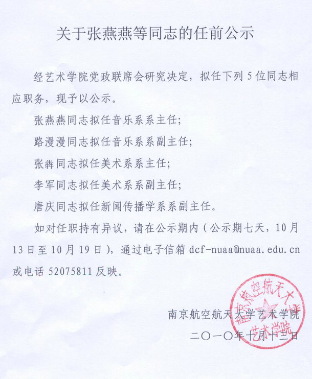如对任职持有异议,请在公示期内(公示期七天,10月13日至10月19日),通过电子信箱