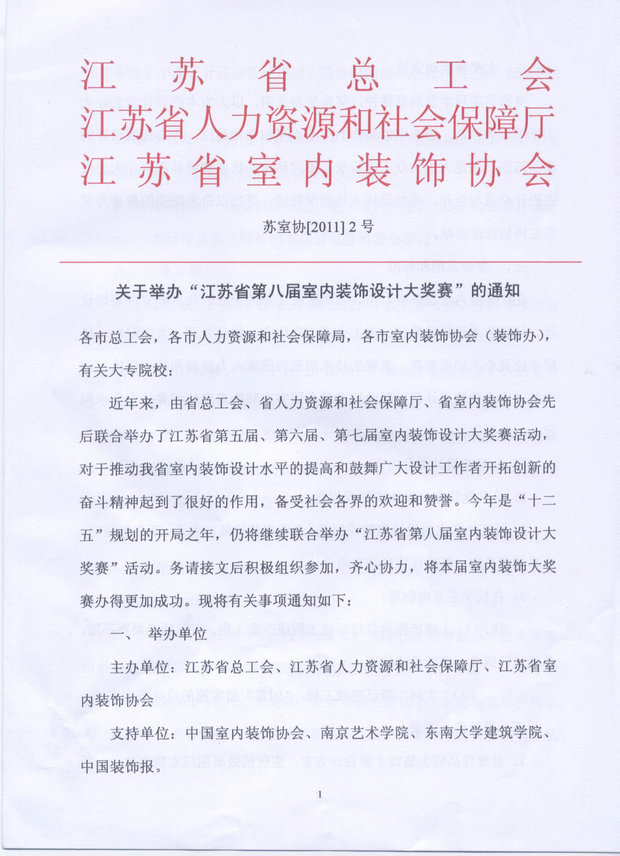 关于举办“江苏省第八届室内装饰设计大奖赛”的通知