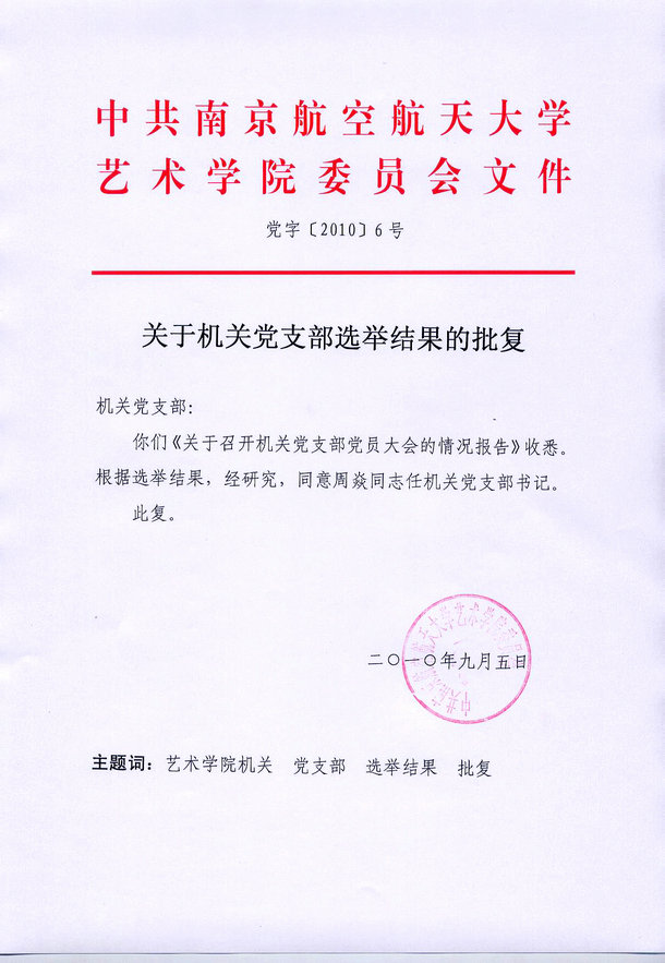 关于机关党支部选举结果的批复