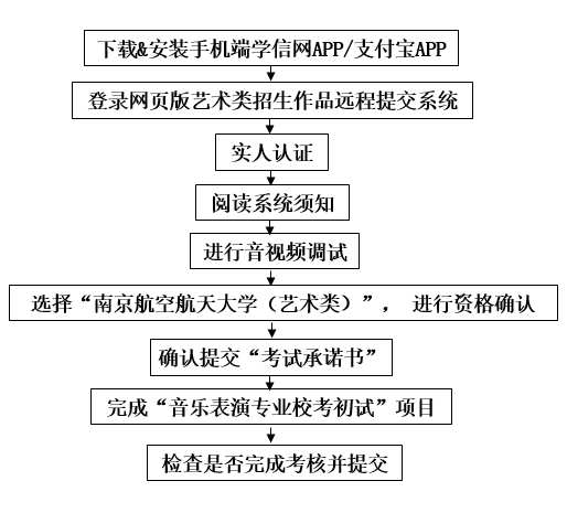 报名成功的考生在学信网“艺术类招生作品远程提交系统”根据要求在线提交视频资料,访问网址://bm.chsi.com.cn/(进入网站后点击“艺术类招生作品远程提交系统”)。不接受通过其他平台提交的视频。
