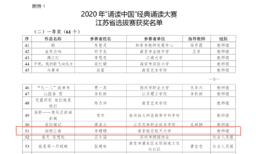 在刚刚落下帷幕的2020年“诵读中国”经典诵读大赛江苏省选拔赛上传来喜讯,线上娱乐城注册 青年教师李珊珊凭借着作品《烟雨江南》获得了教师组一等奖。