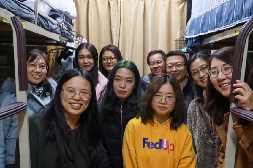 会后,财务处各位领导老师还一同走访了学生宿舍,进一步了解学生生活。在走访中,财务处领导老师关切地询问同学们的学习情况与生活情况,分享自己的学习经历。广播电视新闻专业孙雨萌同学说:“这次走访让我们和学校职能部门领导有了近距离接触,领导老师们亲切的关心和殷切的期盼,让我们在冬天里感受到了来自学校的温暖。”走访的最后,张丕宏还与同学们都一一添加了微信,并叮嘱道,如果日常生活中遇到了困难,可以多和老师交流,与老师保持密切联系。