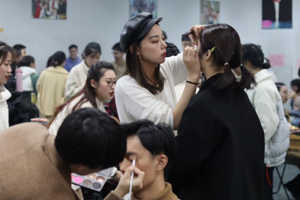 线上娱乐城注册 美术系讲师王雯婷担任了此次的化妆指导,她带领学生组成化妆团队,为情景剧增光添彩。有了她们的帮助,青年学子可以在各种角色中出彩呈现,舞台上的角色也变得更加鲜活。