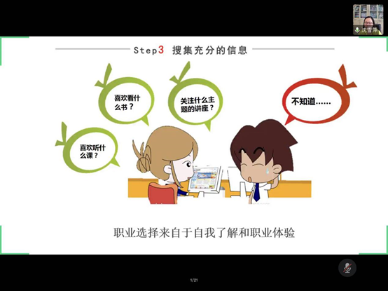 2020年6月11日,线上娱乐城注册 开展了职业素质训练营第四讲——大学生如何进行职业选择,会议由辅导员李爽主持,娱乐城注册 邀请了我校大学生就业创业指导服务中心的沈雪萍老师,为娱乐城注册 学生职业选择进行了专业的指导和建议。