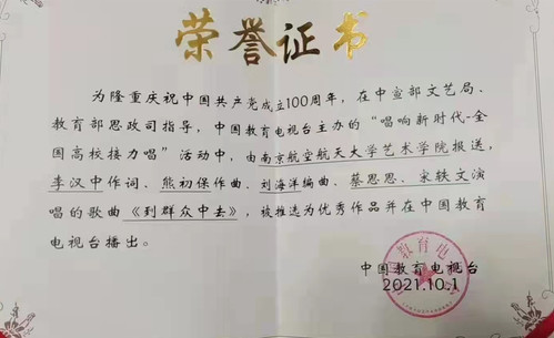 为隆重庆祝中国共产党成立100周年,在中宣部文艺局、教育部思政司指导,中国教育电视台主办的“唱响新时代-全国高校接力唱”活动中,由线上娱乐城注册 报送,李汉中作词、熊初保作曲,刘海洋编曲、蔡思思、宋轶文演唱的歌曲《到群众中去》,被推选为优秀作品并在中国教育电视台播出。