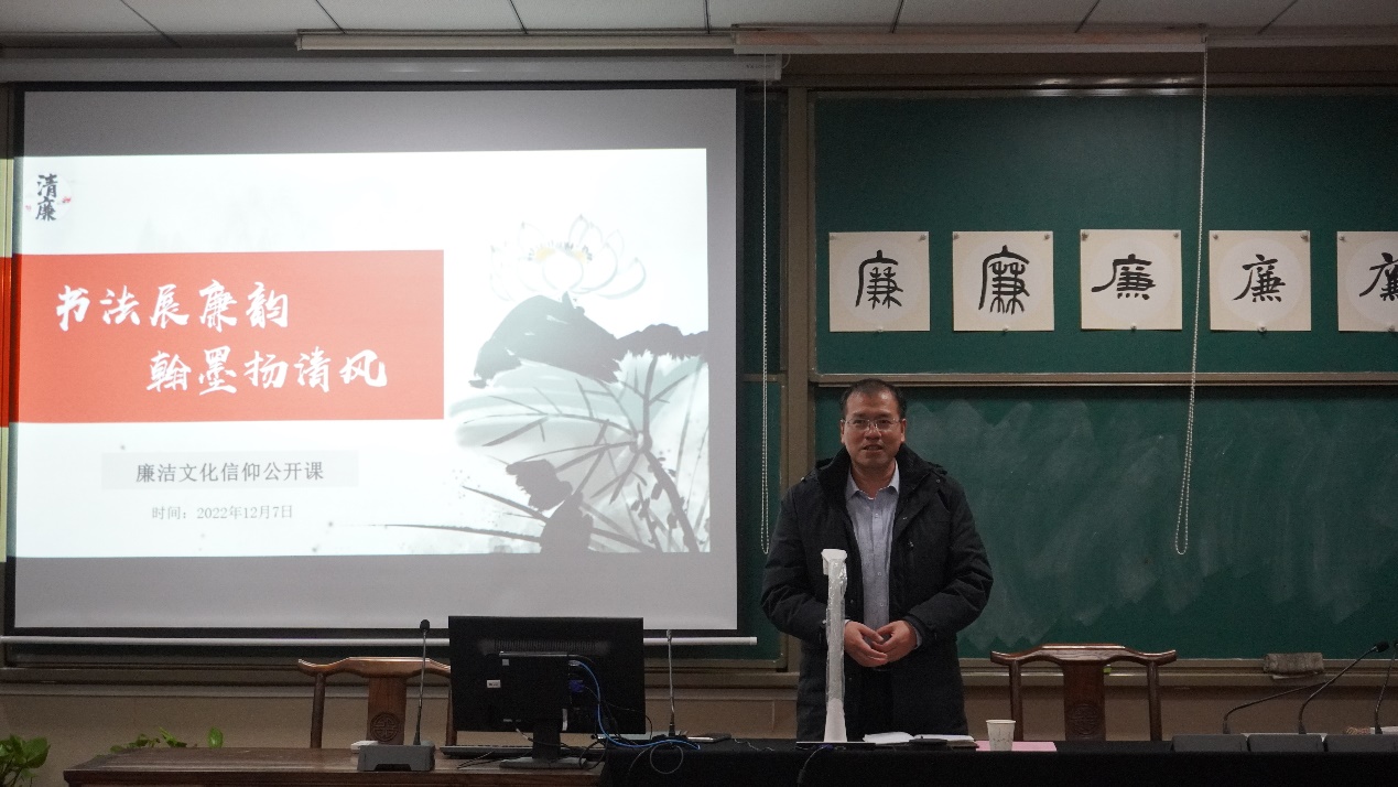 12月7日上午,由经济与管理娱乐城注册 团委、线上娱乐城注册 团委共同承办的“书法展廉韵,翰墨扬清风”信仰公开课在线上娱乐城注册 砚湖书院举行。本次公开课由南京书房创始人、江东书画院院长张星星担任授课嘉宾,校财务处处长张丕宏,经济与管理娱乐城注册 党委书记苏州,线上娱乐城注册 党委书记张钟勤,经济与管理娱乐城注册 党委副书记胡苹、副院长邓晶,线上娱乐城注册 党委副书记王宇宁、副院长马道全,两娱乐城注册 专兼职辅导员,学生会、研究生会主席团以及学生党支部纪检委员等50余