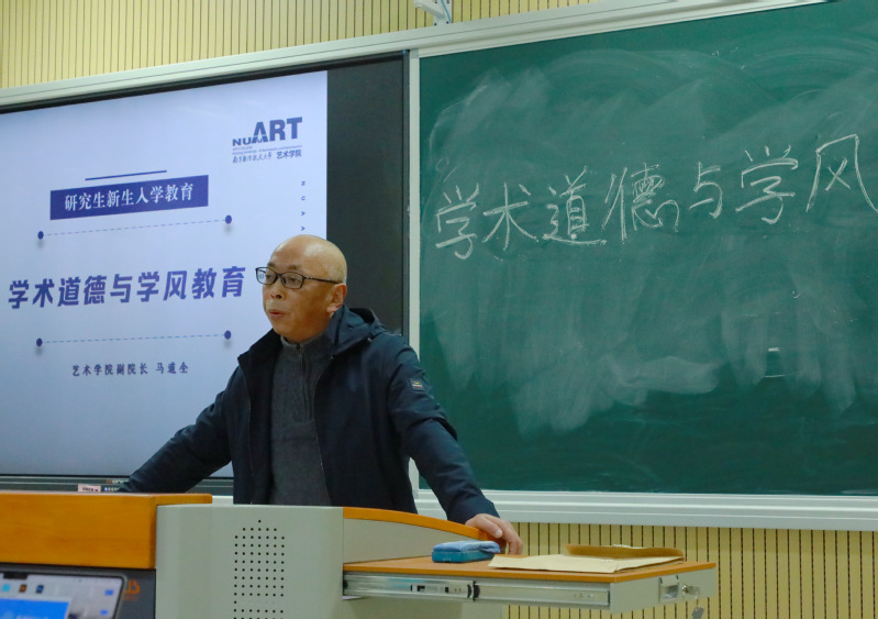 在学风教育方面,马道全老师参照高等学校哲学社会科学研究学术规范,从学术引文规范,学术成果规范、学术评价规范、学术批评规范四方面进行解读,劝诫研究生们要严守底线、严防不端;淡泊名利,志存高远;勇于创新,敢于超越。