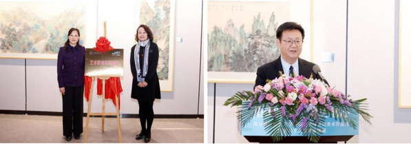 砚湖美术馆还将成为学生进行艺术教育实践的基地。王晖和张钟勤共同为“艺术教育实践基地”揭牌。