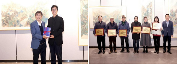 (章剑华向砚湖美术馆赠送作品) (刘宇雷为校友及教师代表颁发捐赠证书)