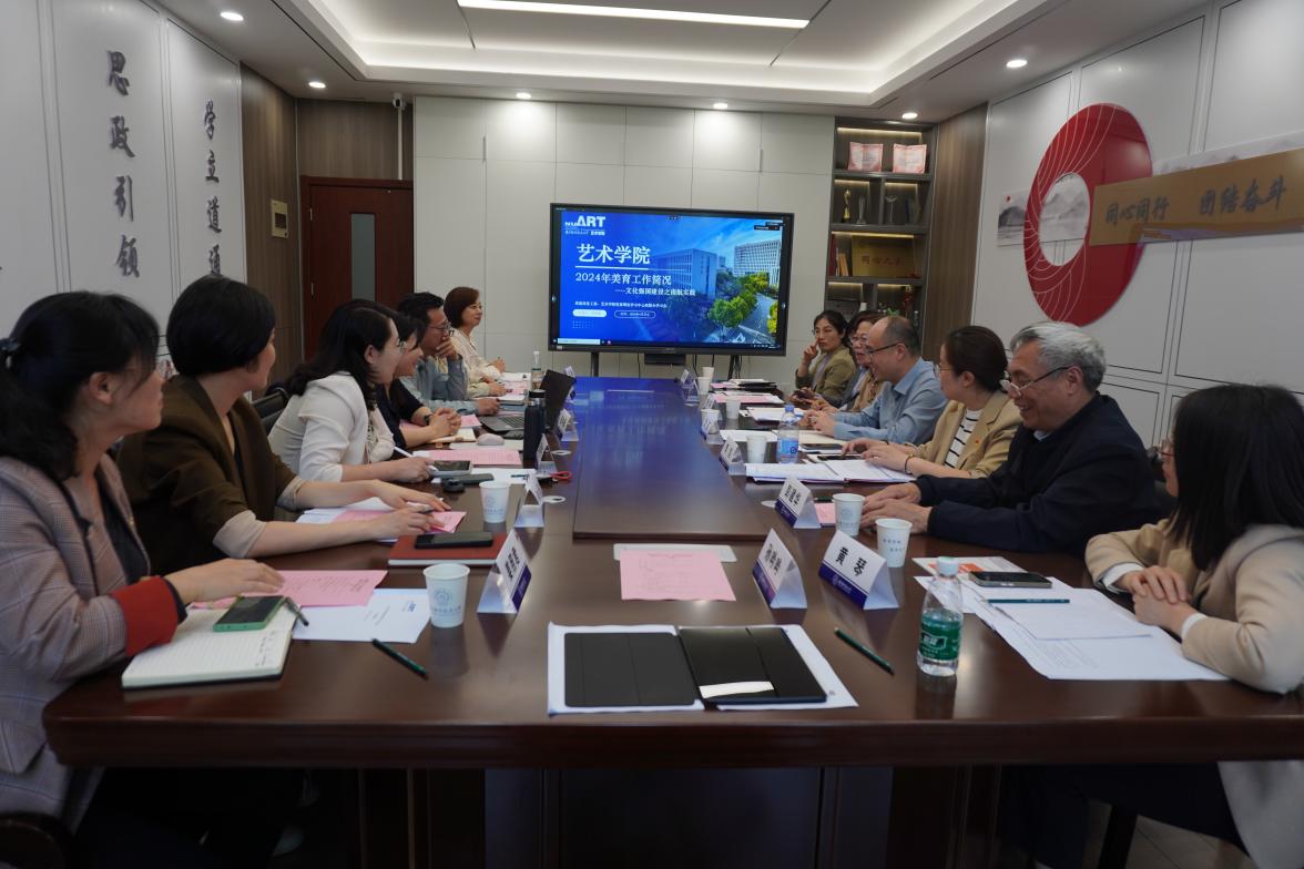 院长板俊荣首先引导大家重温了习近平总书记对于全国宣传思想文化工作的重要指示精神和出席文化传承发展座谈会上的讲话精神,以及关于文化强国的重要论述,并从指导思想、任务目标、工作举措等方面,逐条解读了《教育部关于全面实施学校美育浸润行动的通知》。通过学习,与会人员增强了对于习近平文化思想丰富内涵的理解和领悟,坚定了文化自信和使命担当,并明确了推动和丰富美育教育的方法路径。