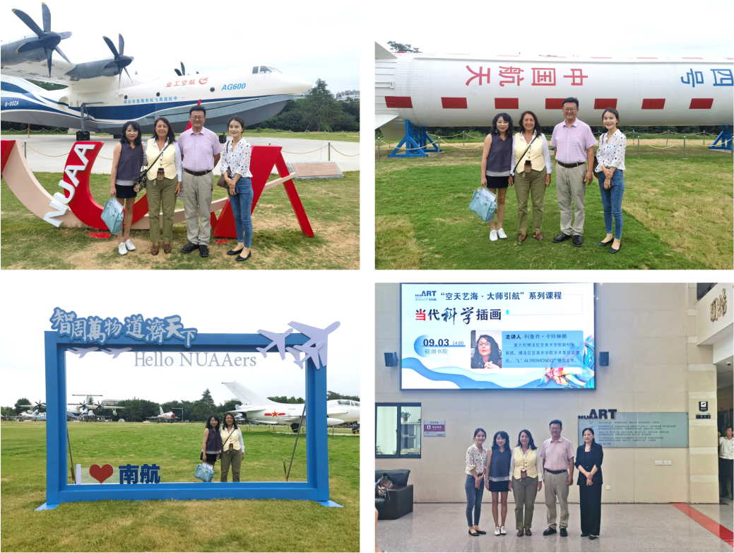 线上娱乐城注册 板俊荣院长对卡特琳娜教授的来访表示热烈欢迎。邀请卡特琳娜教授一行参观了学校的御风园。校园自然风光与现代飞行器和谐地融合在一起,震撼而美丽。板院长向嘉宾介绍了战斗机、直升机等空天装备的入驻背景和功能特点,以及线上娱乐城注册 师生在航空领域高科技制造中发挥的设计作用。卡特琳娜教授表示,参观御风园使她对于艺术和科技的融合应用产生了深刻的印象。