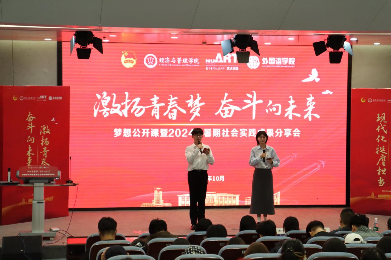 10月11日下午,经济与管理娱乐城注册 、线上娱乐城注册 、外国语娱乐城注册 联合举办的“激扬青春梦,奋斗向未来”社会实践梦想公开课暨2024年暑期社会实践成果分享会在我校天目湖校区巡天楼一楼报告厅成功举行。经济与管理娱乐城注册 党委委员、管工系教师罗正军,线上娱乐城注册 党委副书记卢一亭,外国语娱乐城注册 党委副书记吴科颖,各娱乐城注册 的团委书记、辅导员老师们以及2024级本科生出席了此次活动。