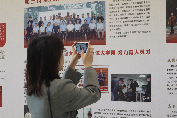 本次主题展在南京航空航天大学将军路校区图书馆二楼大厅展出,展览由“人民教育家”、“人民科学家”、“时代楷模”、“全国高校黄大年式教师团队·南航”、“国家级教学名师·南航”五个部分组成,五十余名参展师生在沉浸式参观学习中深刻体会到人民教育家、人民科学家所具有的道德感染力、价值引领力和实践驱动力,激发了自身投身教育强国、科技强国、人才强国建设实践的精神动力。