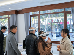 会前,支部一行人对石城实验室的新型显示设备进行了参观。实验室副主任苏玉民及实验室支部党员们生动讲解了各个设备运用技术的原理及应用前景。参观老师和同学们在实验室成员的讲解和指导下,亲身体验了裸眼3D、AR、VR及8K超高清显示等前沿科技,并深度感受了360°环绕视听融合的魅力。
