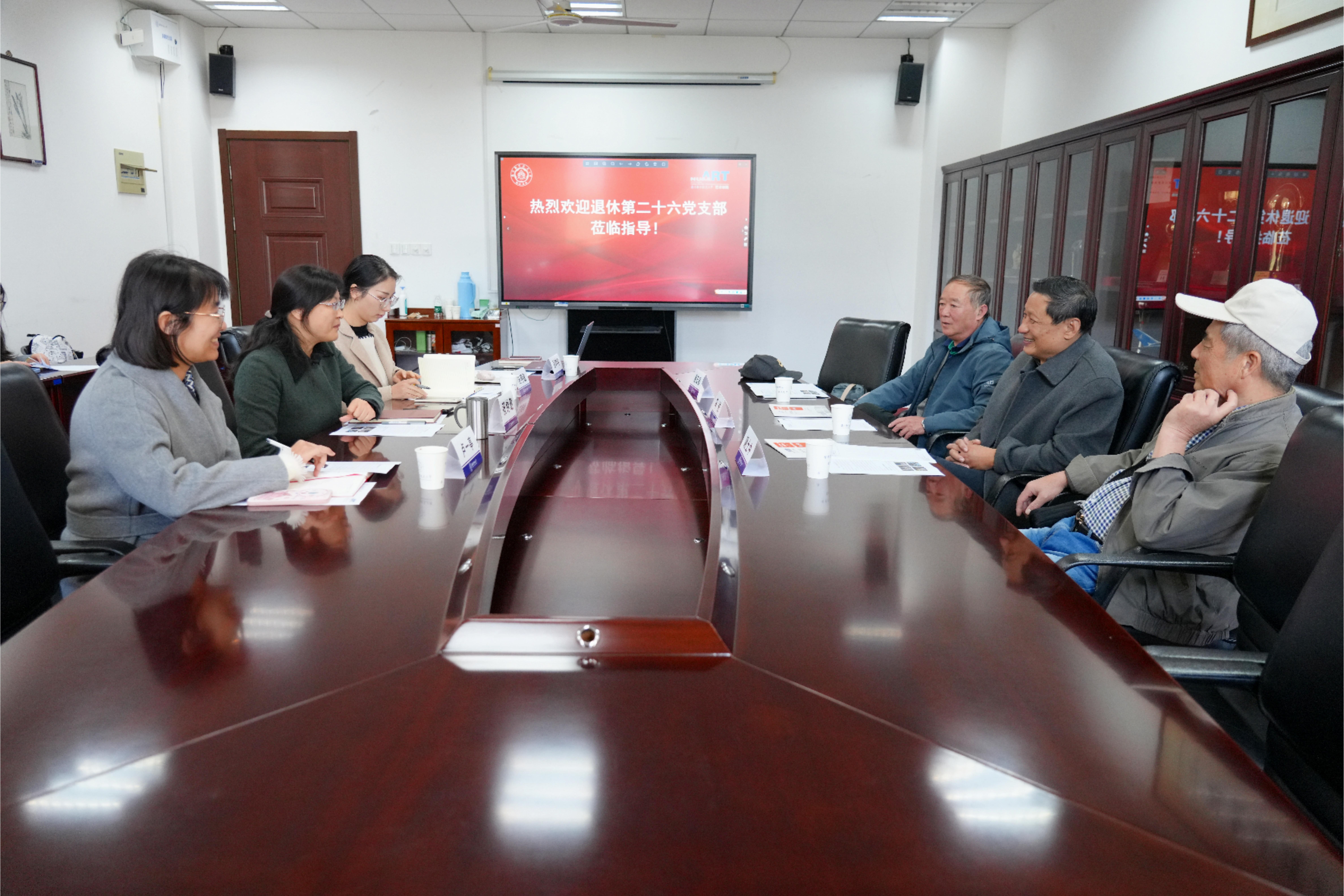 为了深入学习贯彻党的二十大精神,加强基层党组织之间的合作与交流,12月2日,我校离退休党工委第26退休支部来到线上娱乐城注册 进行参观调研,开展支部共建交流活动。第26退休支部书记冯进、支部委员谢土中、潘天禄,线上娱乐城注册 党委书记张钟勤、副书记卢一亭、正科级组织员孙吟吟、团委书记汪明锐参加了此次共建。