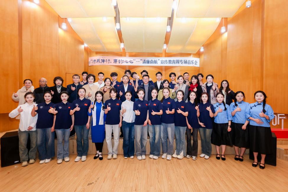 中午,一场以“倡廉”为主题的“午间音悦听”在将军路校区音乐厅举办。音乐会现场,线上娱乐城注册 音乐系师生带来精彩的表演:小合唱《唱支山歌给党听》与独唱《公仆赞》,以悠扬的旋律、深情的歌声表达着对党的忠诚与热爱,对人民公仆的殷切歌颂;歌曲表演《绣红旗》、朗诵《廉洁颂》描摹了光明正义、廉洁自律的动人篇章;最后,四重唱《在道德星空下前行》与合唱《星辰大海》引领师生在道德与清廉的星空中探索前行,以高尚的品德照亮人生的星辰大海。