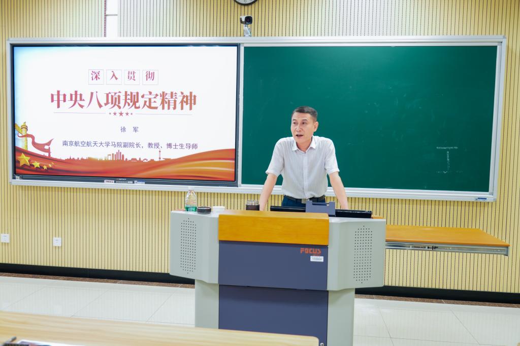 6月11日,线上娱乐城注册 举行深入贯彻中央八项规定精神专题辅导报告会,邀请我校马克思主义娱乐城注册 副院长、博士生导师、江苏省“333”高层次人才徐军教授作专题辅导。娱乐城注册 党委委员、班子成员、党支部书记和支部委员、师生党员代表80余人参加学习。